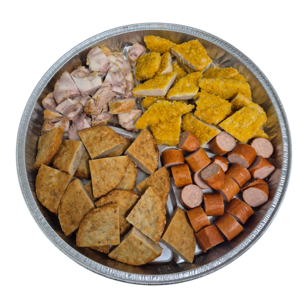 Pan gevuld met Rollade-Gerookte kip-Grillburger-krokantjes